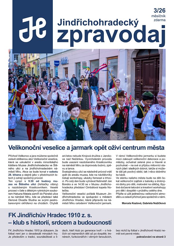 zasíláme vám březnové vydání Jindřichohradeckého zpravodaje.